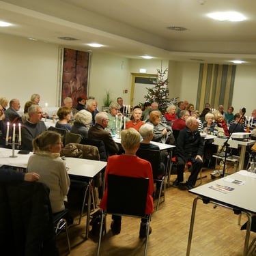 An diesem Abend sollten es deutsche und französische Adventslieder sein. Die über 50 Gäste genossen die besinnlich-melancholischen, aber auch beschwingten Lieder und waren sichtlich begeistert! Beim gemütlichen „Libori-Teller“ mit Wurst und Käse klang der Abend mit Gesprächen und Rückblicken aus.