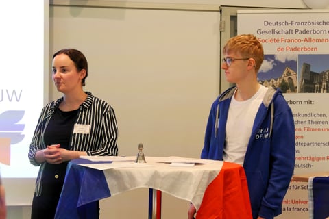Die Tagung begann mit Grußworten von Birgit Kelliger, Präsidentin der DFG Paderborn, Jochen Hake, Präsident der VDFG, dem Dachverband aller DFGen in Deutschland, Michael Dreier, Bürgermeister von Paderborn, Dr. Etienne Sur, Generalkonsul Frankreichs in Düsseldorf, sowie Julia Müller, Transformationsbeauftragte VDFG für Europa und Simon Kramer, Juniorbotschafter des Deutsch-Französischen Jugendwerks. Julia Müller und Simon Kramer boten danach eine Arbeitsgruppe für die ‚Junge DFG‘ an.