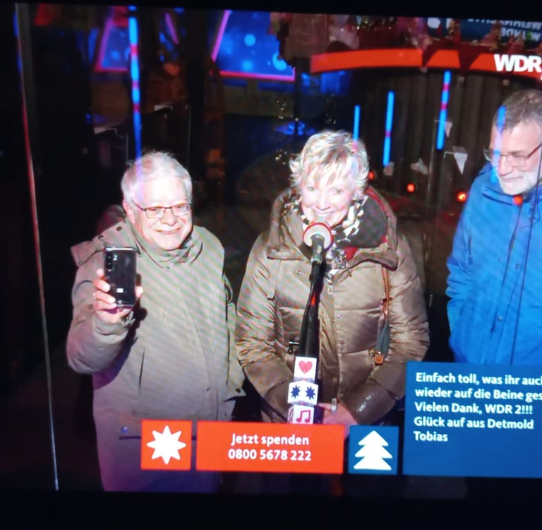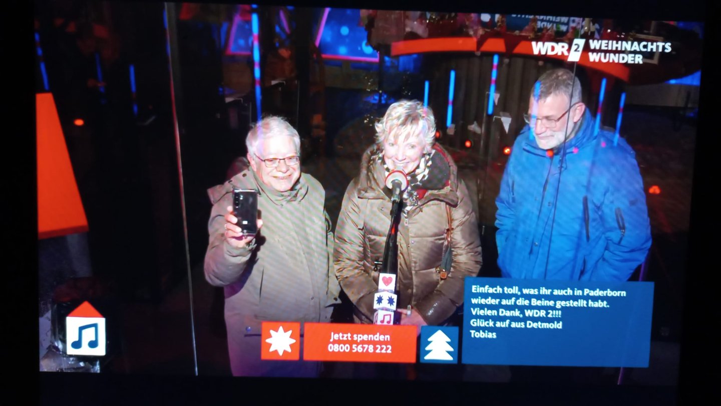 Außerdem druften wir im Rahmen der WDR2 Aktion "Weihnachtswunder" fast 400 EUR spenden. Unsere Präsidentin Birgit Kelliger hat einen Gruß Live gesprochen.
