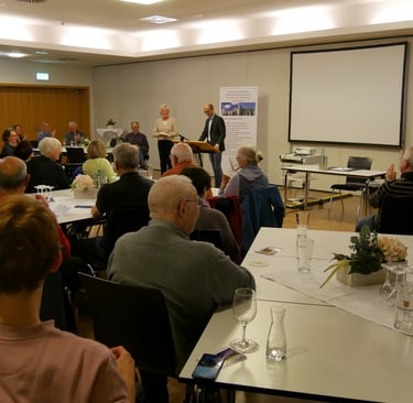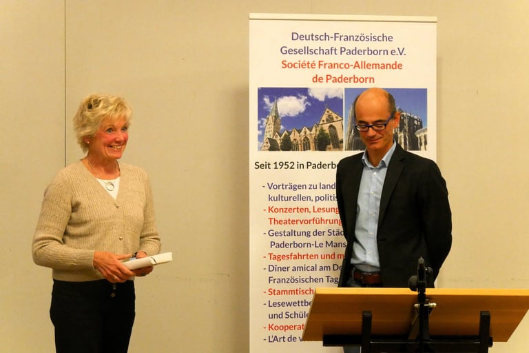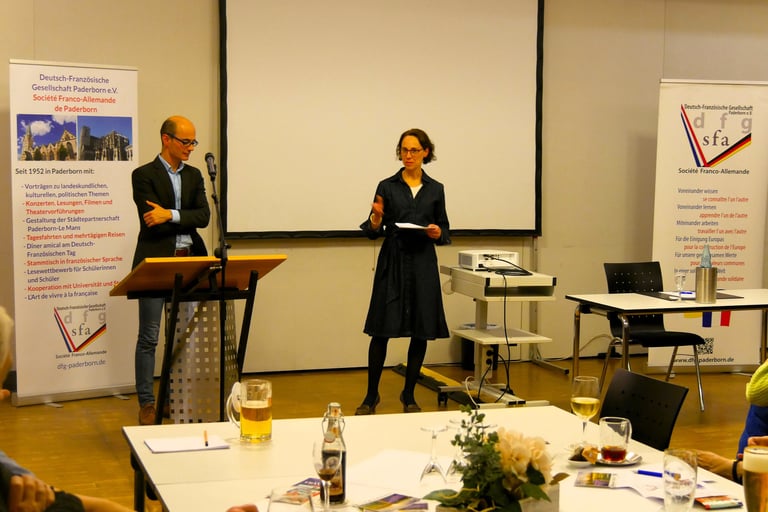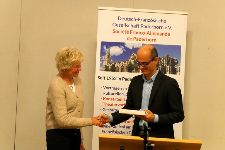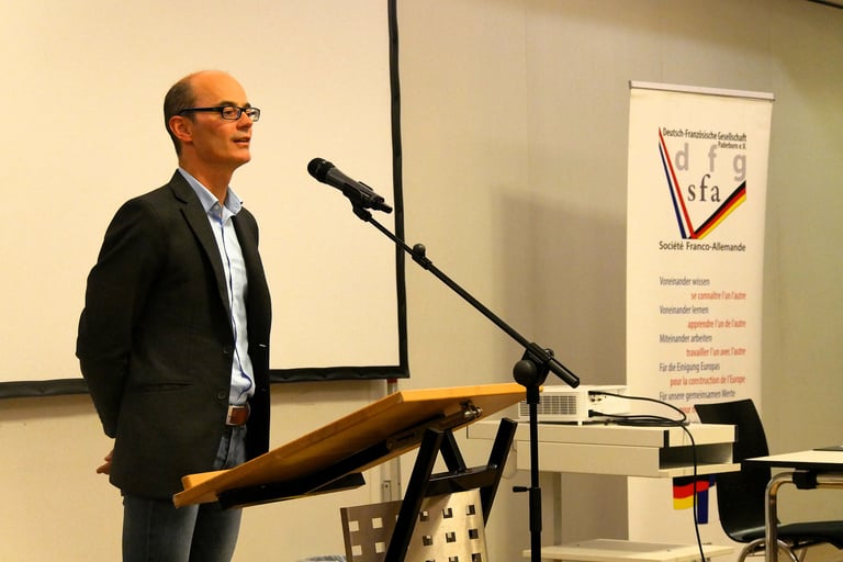 „Das Drama geht weiter“, so begann Dr. Landry Charrier – Gastautor bei Focus Online und Leiter des Blogs ‚Franko-viel‘ – seinen Vortrag zu den politischen Entwicklungen in Frankreich. Die Situation ist schwierig, instabil, die französische Nationalversammlung, ‚Assemblée Nationale‘, zersplittert, insbesondere links vom Rassemblement National (RN), der extremen Rechten. In Frankreich scheint es unüblich, Kompromisse zu schließen. Kompromiss, so Charrier, werde gleichgesetzt mit ‚sich kompromittieren‘, ist also etwas Negatives und schade eher.